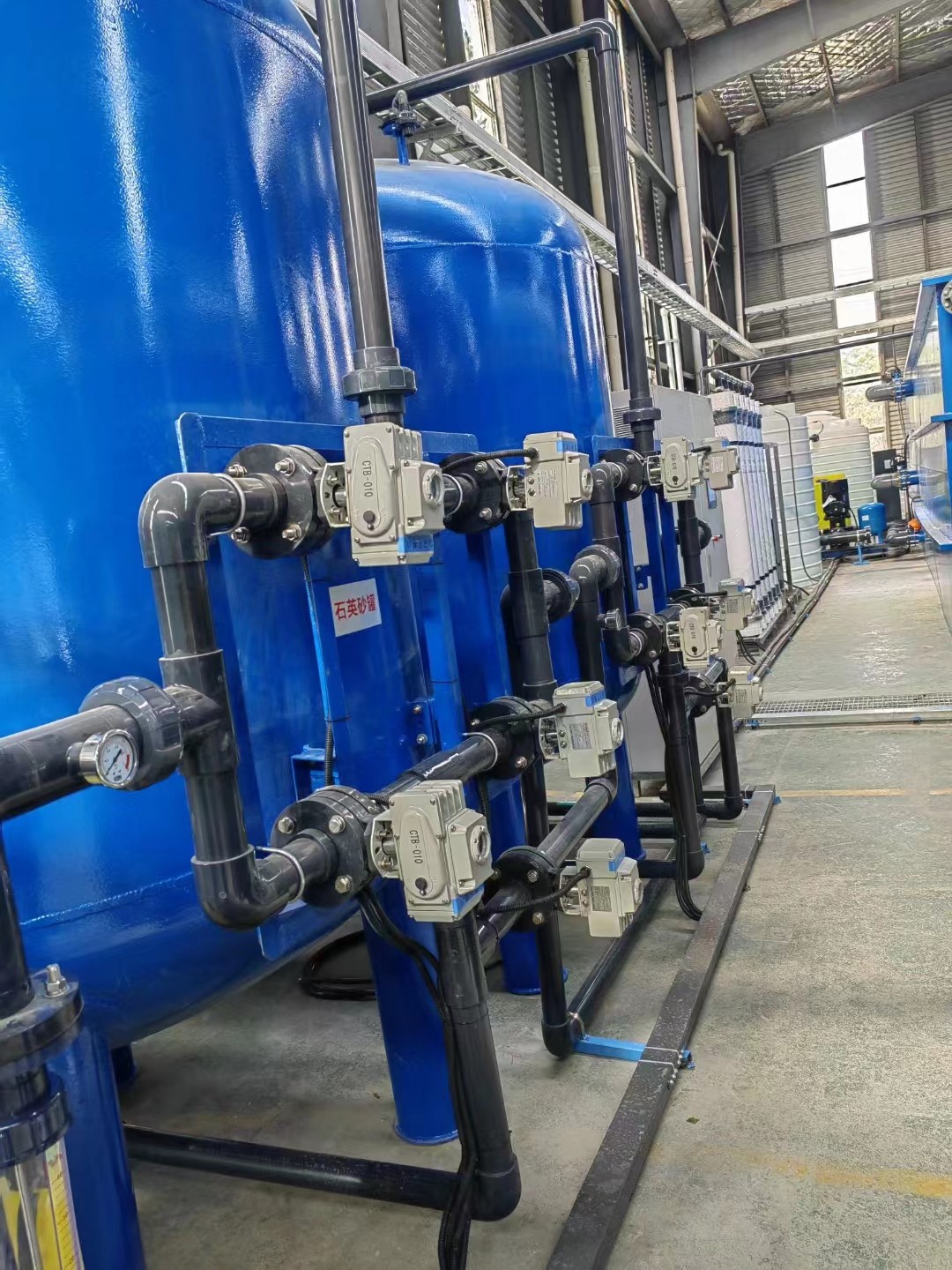 The multi-media filter (quartz sand) is an important pre-treatment device of the system. lt uses quartz sand and smokeless media as filter materials. ts role is to filter out impurities such as fine particles, suspended solids and colloids brought by the raw water,so as to ensure that the water quality of the produced water meets the requirements of the incoming water quality of the subsequent treatment device,and the suspended solids of the outgoing water quality is less than 5mg/L.Characteristics:*Effectively remove colloids, suspended solids, and rust from ray water:"t has a unique uniform water distribution method that can block the retention of filter material and balance the resistance of the filter layer to prevent bias flow, enabling the filter to achieve the best effect;"The filing material is high-quality filter material, with a nonuniform coefficient of2-3 to ensure good filtration effect and avoid back washing and disordered layers; "Choose a lower operating flow rate to adapt to the possibility of future water quality deterioration.